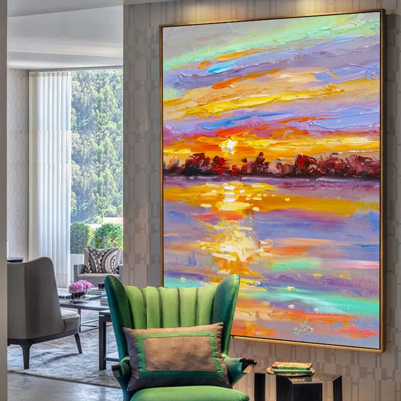 100%Handpainted Abstract Sunset Sea Oil Paint On Canvas Art Oil Painting Gift Home Decor Living Roo