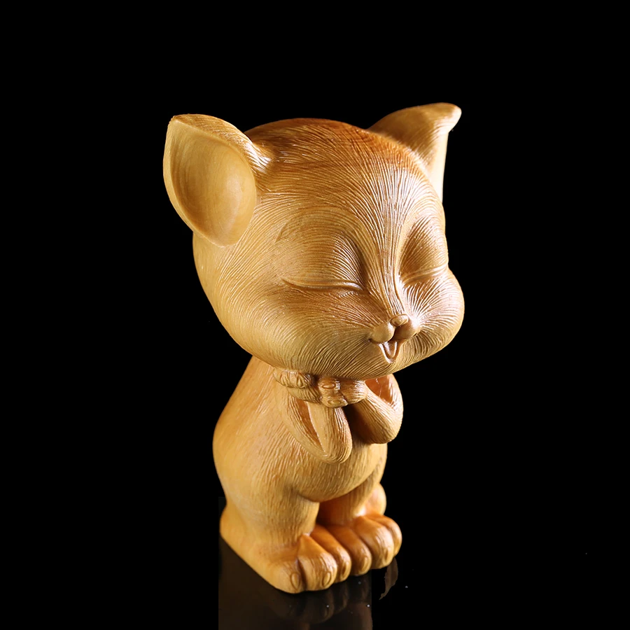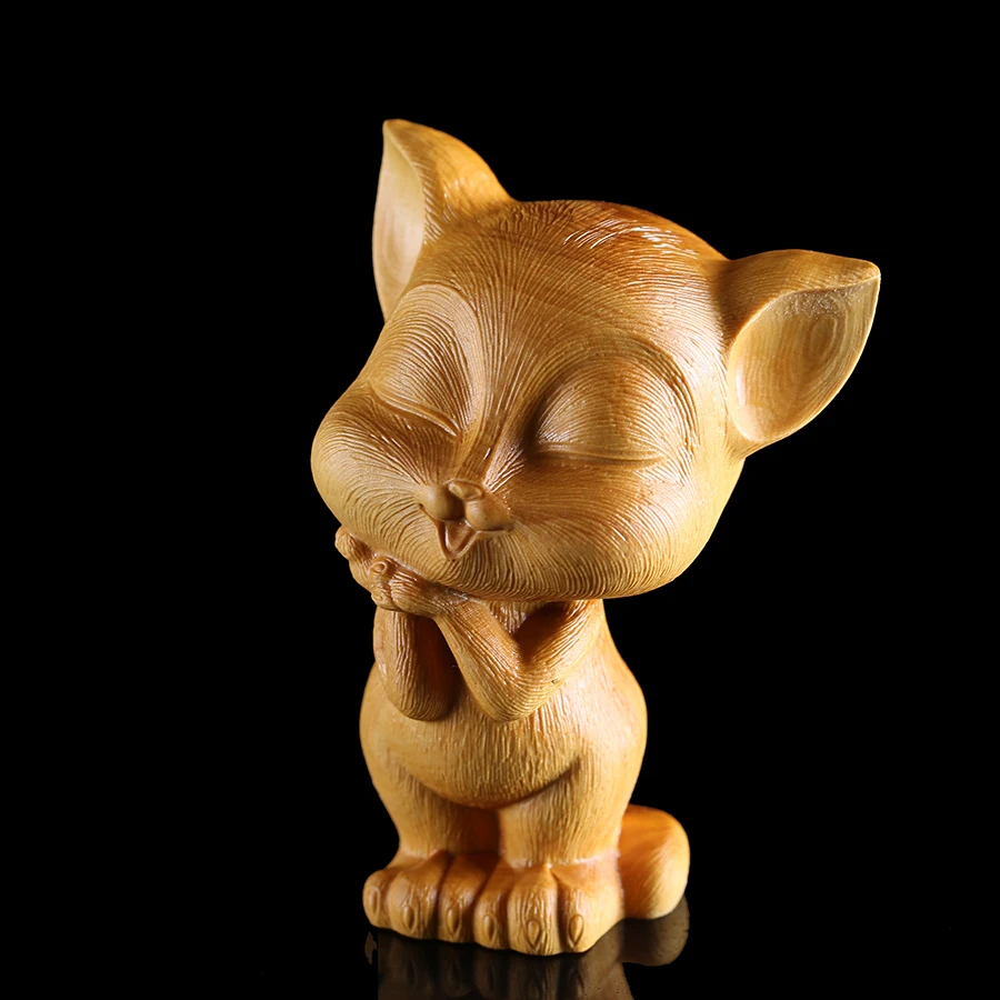 Cat wood carvings Home small statue wall ornaments Valentine's Day gift Art collection animals stat