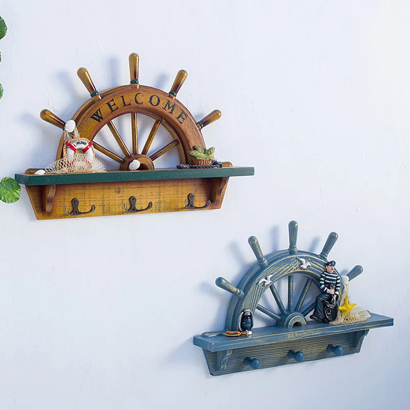 Mediterranean Wooden Rubber Coat Hook Vintage Hanger Hook Home Decoration Accessories Wall Hooks Ho