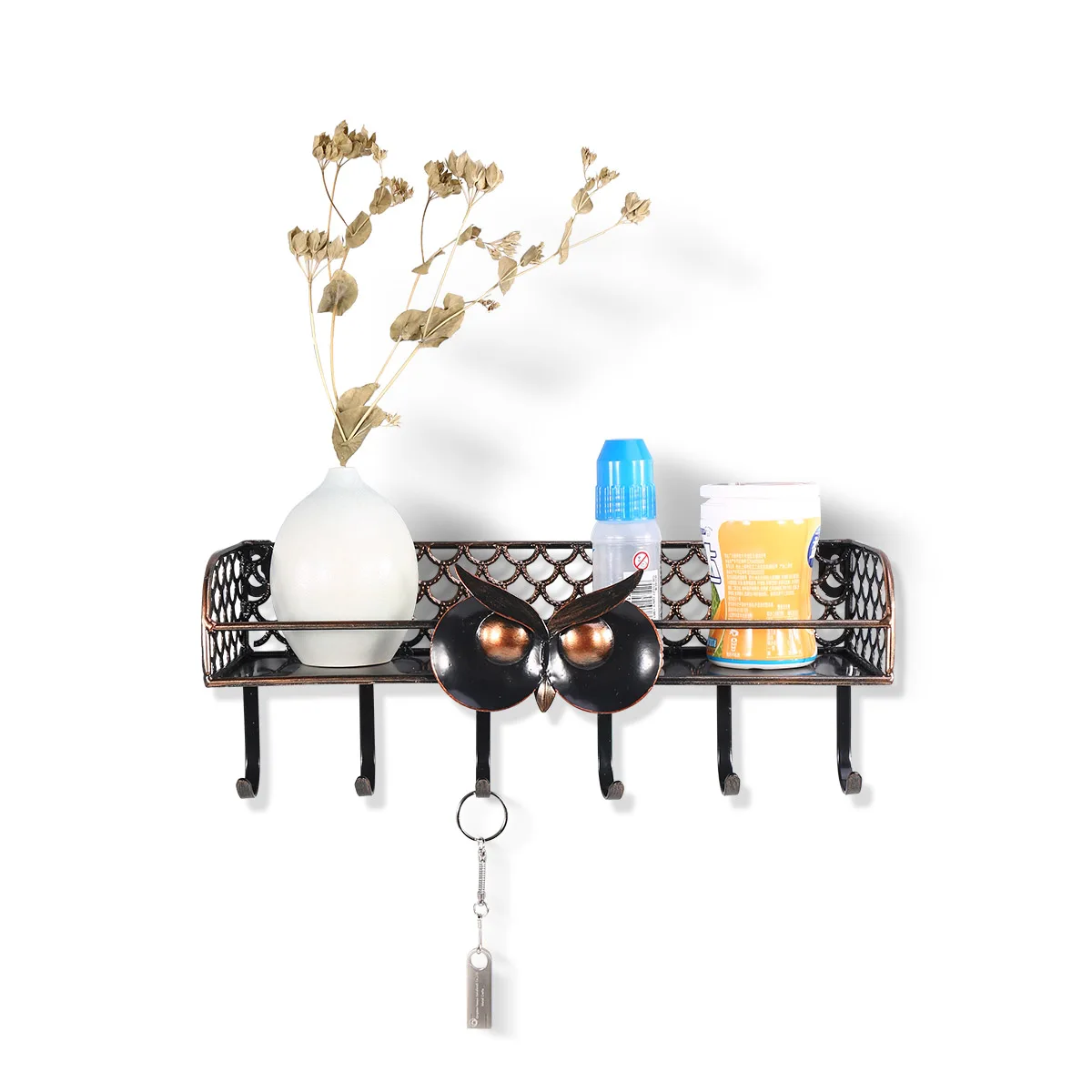 Hot Sale New Multifunctional Wall Mounted Owl Spice Shelf with Hooks Iron Spice Rack Space Saving Storage Or