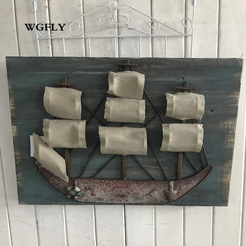 Antique pirate ship creative wrought iron wooden boat wall hanging home hotel cafe decoration