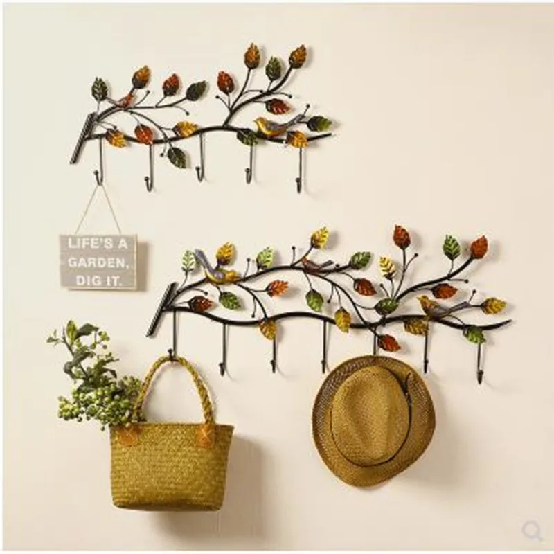Creative iron leaf clothes hook key hook decorative hook wall coat rack wall clothes hanger