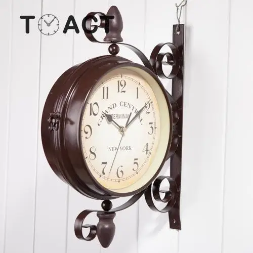 HIGH QUALITY Double Sided Wall Clock Big Retro Wall Clocks Kitchen European Vintage Hanging Watch Home Decoratio